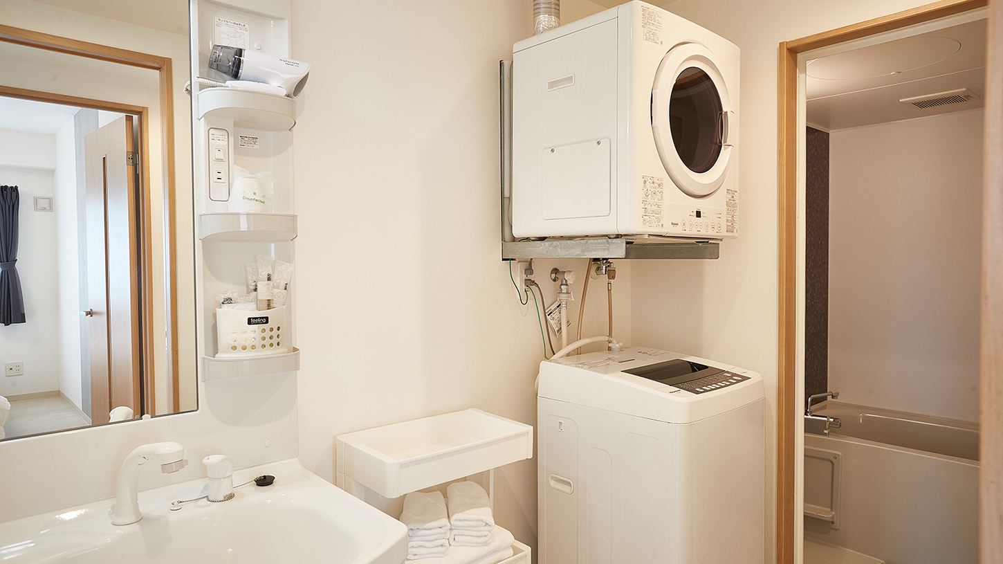 洗濯機とガス乾燥機を完備。長期滞在にも最適!
